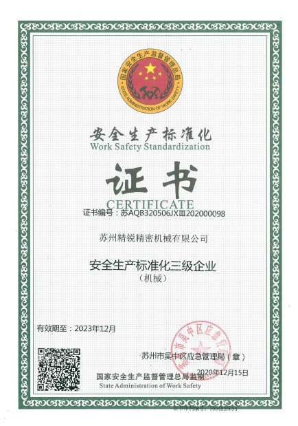 三级标准化证书